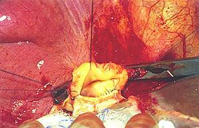2) The diseased liver is disconnected from blood vessels and ducts, and the vena cava is clamped.