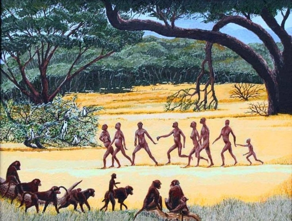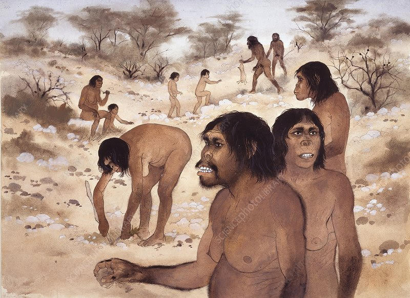 To make the point, I want the reader to imagine that you are now going back in time to visit a group of deep ancestors, and I don’t mean our grandparents or our great-grandparents, but rather a troop of Homo habilis, a hominid species who lived 2.8 to 1.65 million years ago in East and South Africa. Here are 3 views of our troop.