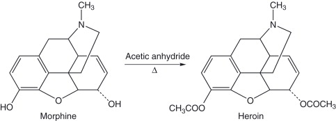 Fentanyl is an opioid, a chemical that acts on the same brain receptors as opiates, but lacks the chemical backbone that opiates do. For example, here is an illustration of morphine and heroin, and you can see that the backbone of these two compounds is identical: