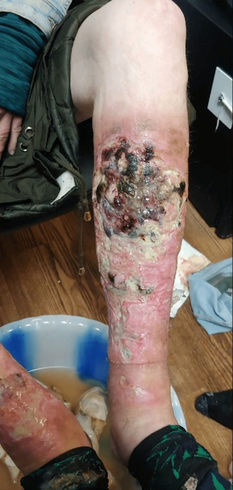The xylazine high may last up to 6 hours, and users often feel driven to look for their next dosage while still high. This makes abstinence difficult. The lack of effective withdrawal treatment makes abstinence difficult, as standard medication-assisted therapies for opioid use disorder do not mitigate xylazine withdrawal symptoms. The chronic use of heroin and fentanyl mixed with xylazine can lead to deep skin ulcers, abscesses, and infections. These xylazine-associated wounds (like the ones shown below) may increase the risk of bacteremia, endocarditis, sepsis, limb amputation, and death. Any patient with a nonhealing ulcer, regardless of the use of injection as the route of administration, should be assessed for xylazine use.”