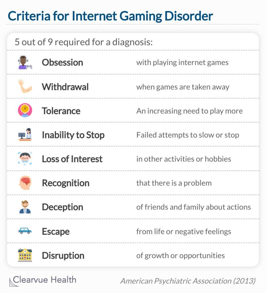 The DSM-V suggests the following criteria for Internet Gaming Disorder: