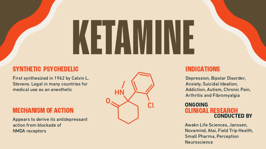 As the only licensed psychedelic, ketamine is being studied for a wide range of indications, including: