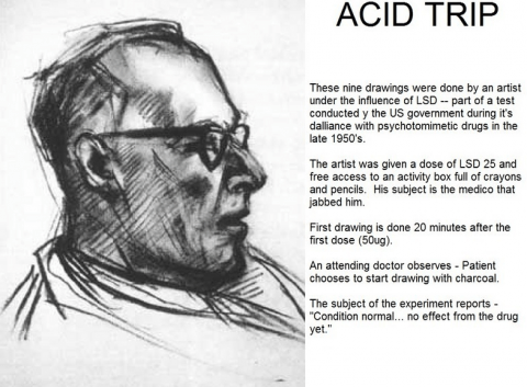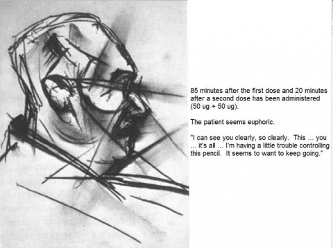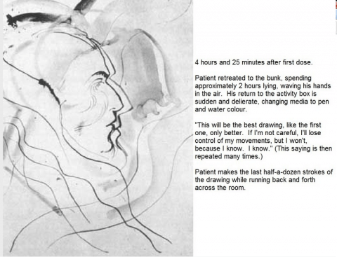 In the 1950’s, scientists collected drawings made by artists under the influence of various psychedelic compounds. Here is a series of 8 drawings made by one particular artist who was given LSD: