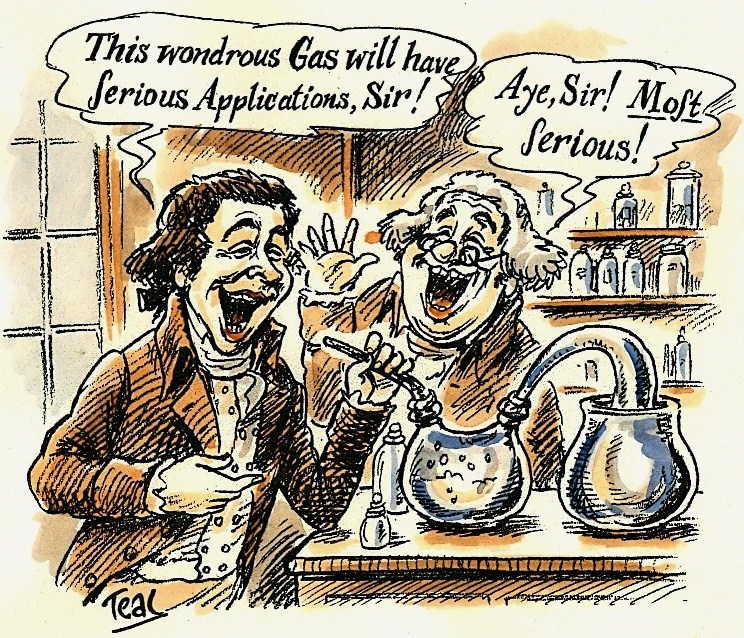 In 1772, Joseph Priestly, an English chemistry and natural philosopher synthesized nitrous oxide. By 1799, nitrous oxide became popular as a recreational drug at “laughing gas parties” for members of the upper class in British society. It was known to cause euphoria, laughing, dancing, mild hallucinations and generally silly behavior. It was a favorite pastime of medical students at universities ( https://www.docseducation.com/blog/wacky-history-nitrous-oxide-its-no-laughing-matter ) .